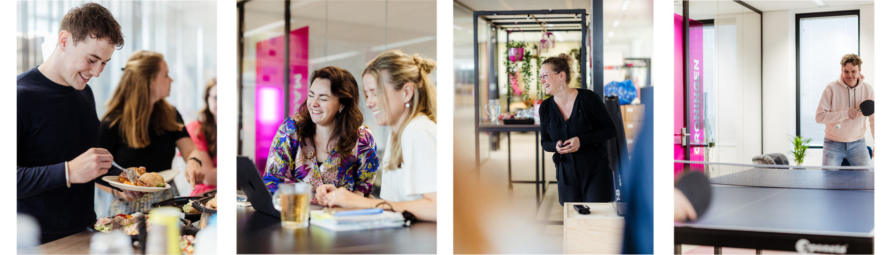 We investeren graag in je ontwikkeling en groei. Er is altijd ruimte voor een goed gesprek en feedback mag twee kanten op. En inhoudelijke en pittige discussies? Graag. Want zo komen we allemaal verder.