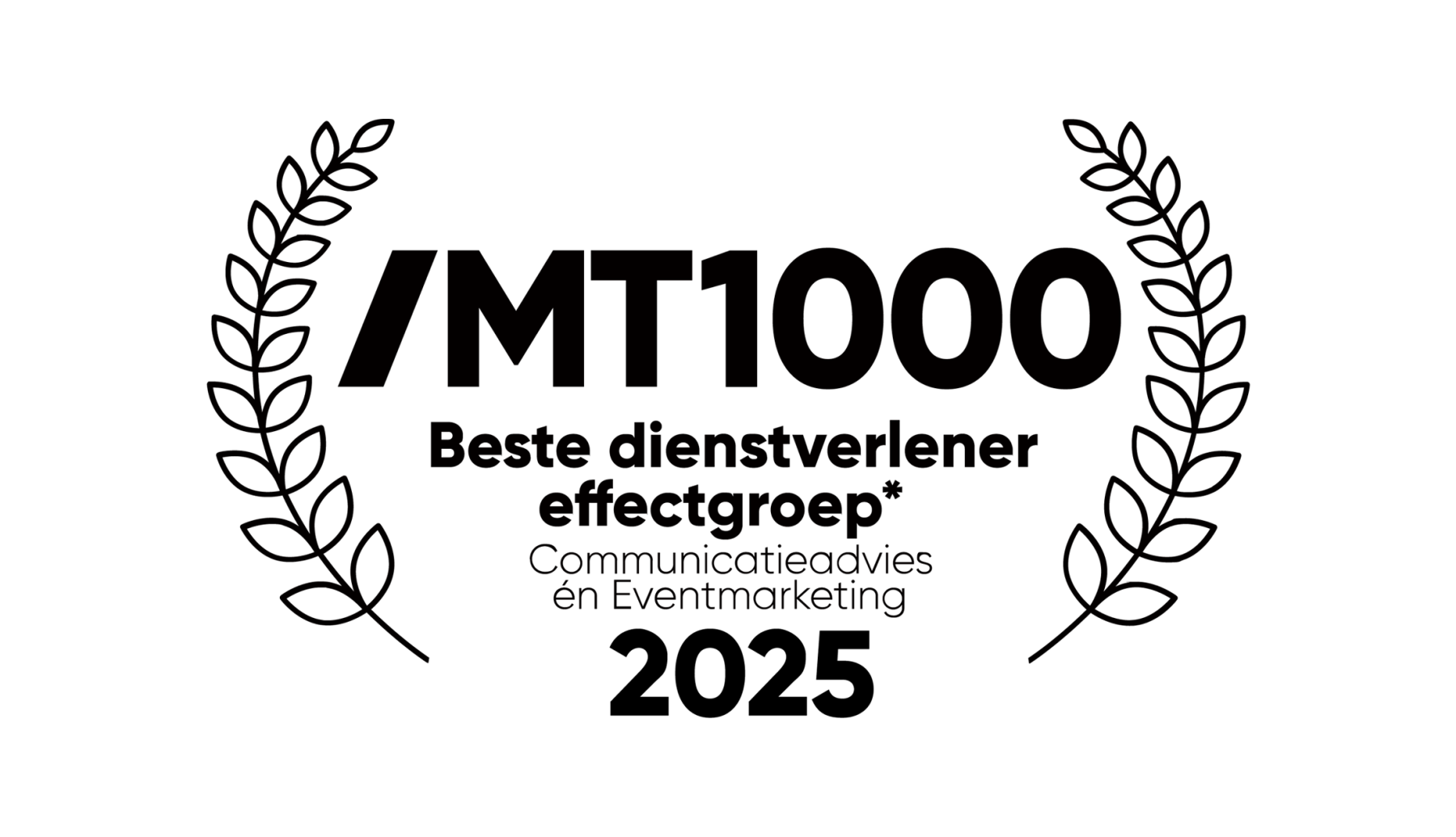 Werken bij effectgroep* is kiezen voor kwaliteit en creativiteit. Met topnoteringen in de FONK150 (beste designbureau), MT1000 (5x beste eventmarketingbureau) en EMERCE100 (beste digital marketingbureau) durven we die spierballentaal wel te gebruiken.